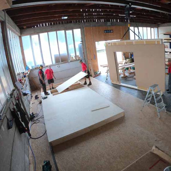 Bauart: Fundamente und Bodenplatte in Stahlbetonbauweise, Rest in Holzständerbauweise